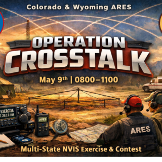 Colorado + Wyoming ARES | May 9, 2026 OperationCrosstalk Colorado ARES and Wyoming ARES are joining forces for a joint NVIS exercise and contest — three hours to make as many contacts as possible across the region. Date 9 MAY 2026 Start time 0800 Local...