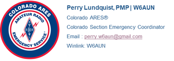 I will be using the Colorado ARES 80 meter SSB net on Sunday mornings at 08:00, and also the Sunday evening statewide VHF/UHF net on the Colorado Connection and WE0FUN Fun Machine systems of repeaters at 20:00, to share news and information of interest to the ARES community in Colorado. Knowing that not everyone checks into our statewide nets, I plan to also send the same information out as SEC Bulletins to our Regional and District ECs and publishing them here on the Colorado ARES Website. Each bulletin is linked below in reverse chronological order.